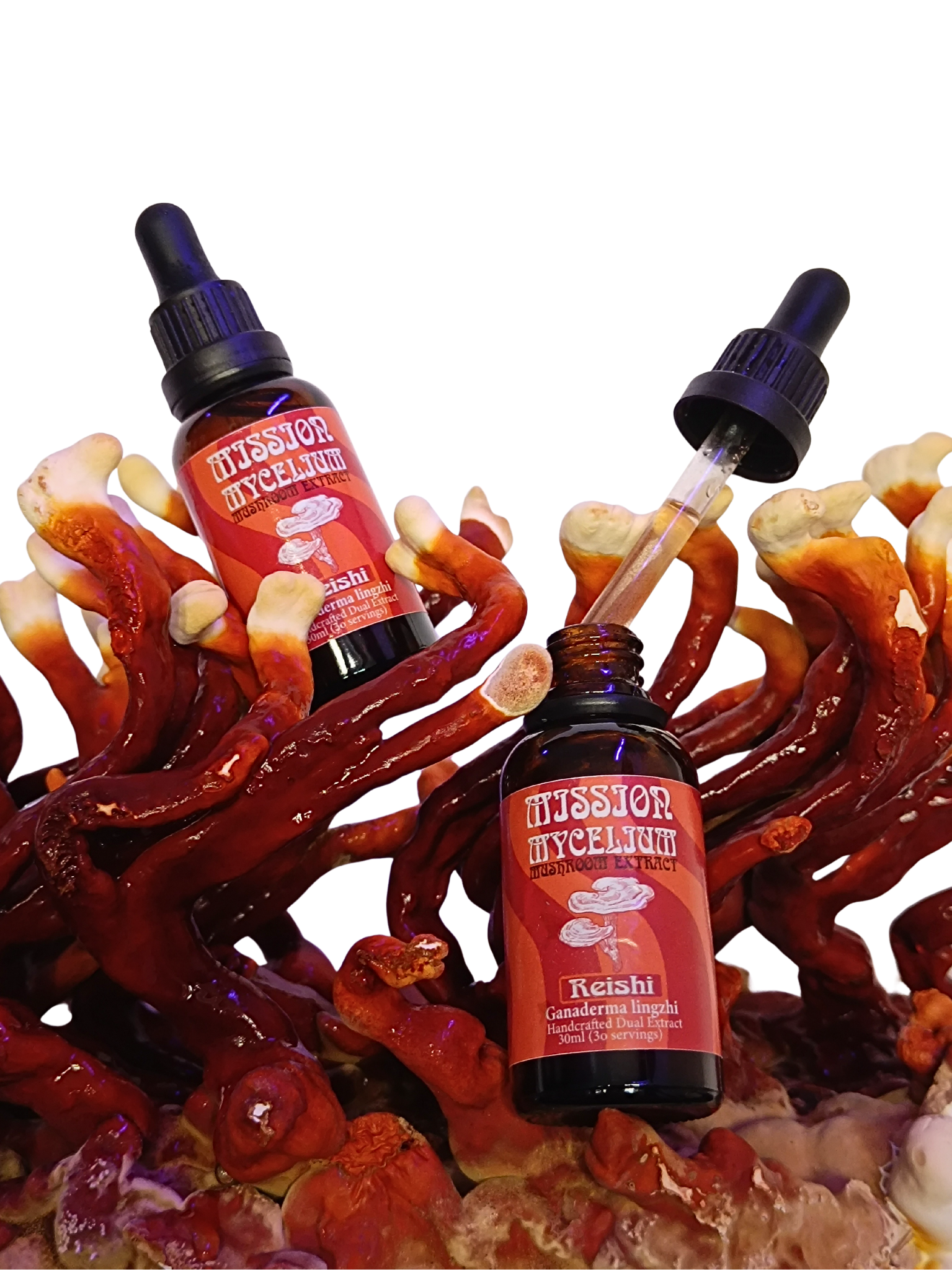 Découvrez notre teinture de Reishi (Ganaderma lingzhi). Aussi connu sous le nom de champignon de l'immortalité dans la médecine chinoise.